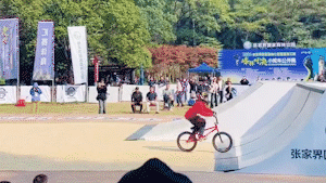 在一系列极具观赏性的腾空和地面花式动作中,刘浩冉最擅长的动作是“360两圈反向神龙摆尾”。(“神龙摆尾”是腾空的小轮车车尾旋转,同时保持车头不动)这个动作难度大、得分高,是他苦练一年拿下的动作。