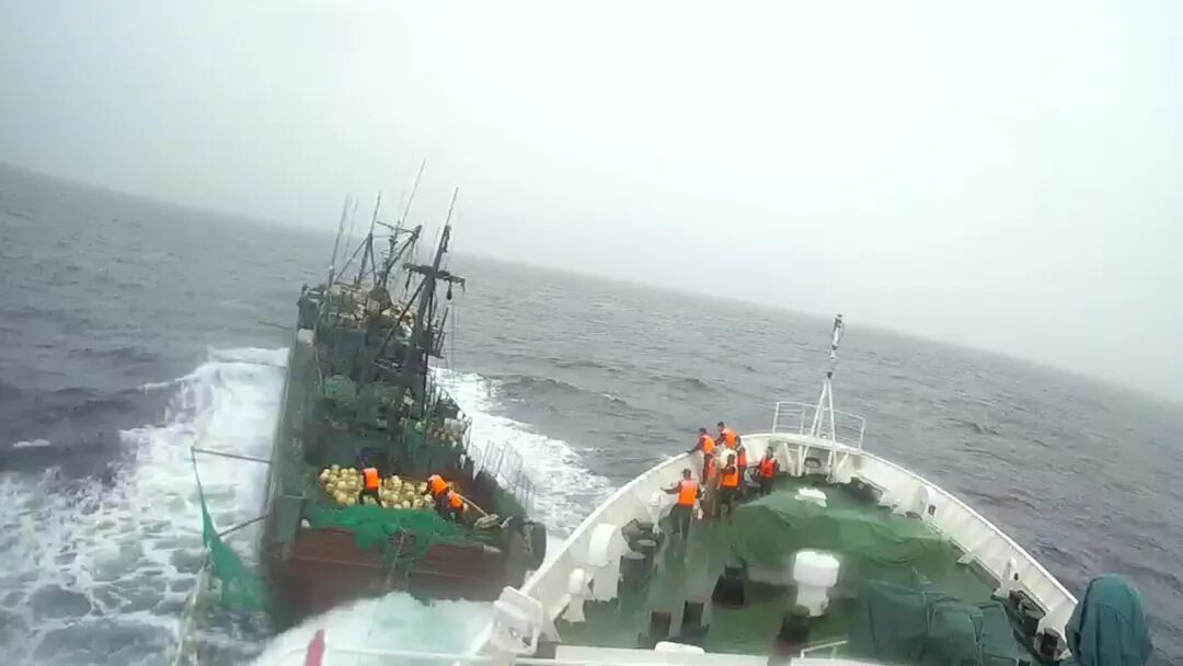 近日,中国海警局北海分局直属第六局所属石山舰在黄海中部海域执行巡航任务时,成功查缉一艘暴力抗法的违规作业渔船,现场抓获违法嫌疑人17名。