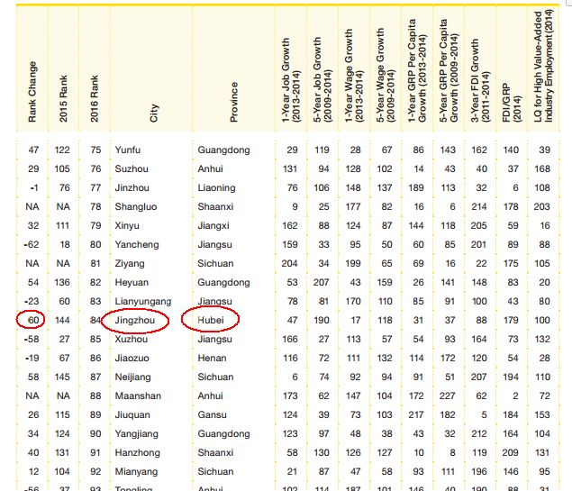 近日,美国知名独立经济智库米尔肯研究所,在耶鲁北京中心发表了2016年度中国最佳表现城市指标,这是该研究所在2015年首度发布该榜单产生巨大影响后,第二次针对中国城市新一年的表现制定榜单。米尔肯研究所的中国最佳表现城市指标排行榜,共研究了全国260个城市,并基于其经济表现分成了33个一二线城市和232个三线城市。荆州排在第84位,较上一年榜单跃升60位(去年位居第144位)。