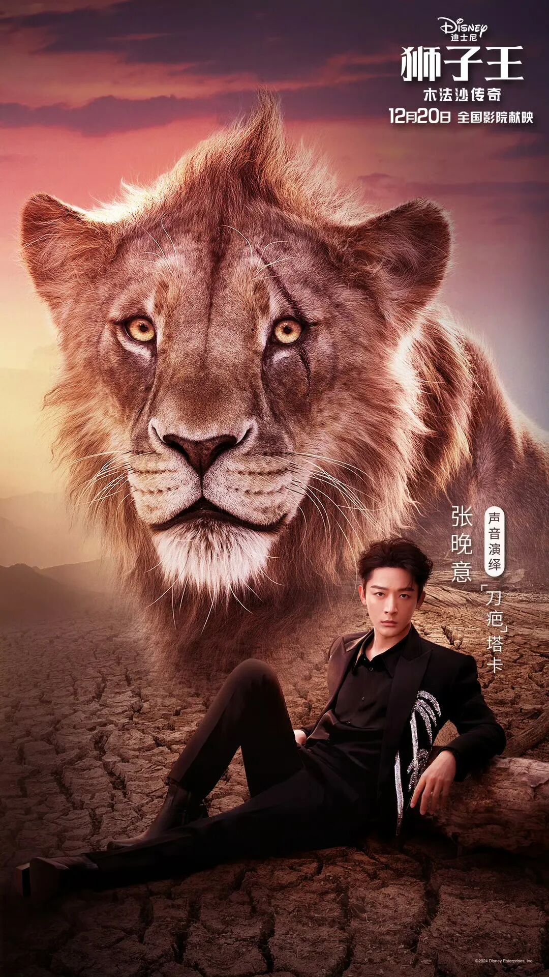 12月3日上午,湖北籍男演员张晚意发文表示将在《狮子王:木法沙传奇》中为尚未黑化的“刀疤”塔卡一角配音。