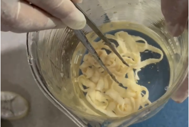 “神药”很快见效,当天下午,小贝就排出了这条完整的绦虫,头节、颈节等都在,长达十米,还是活的!经专家检验,是一条牛带绦虫。