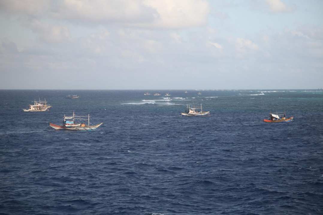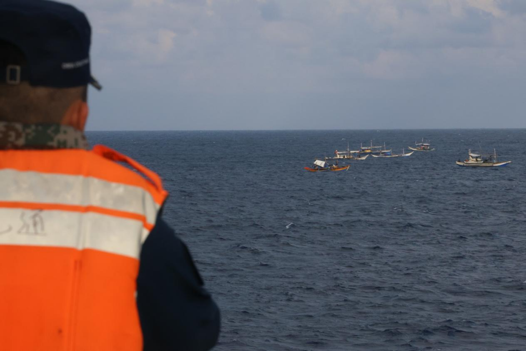 记者从参与现场执法的中国海警船只获取的图片显示,菲方渔船呈现“编队化”的特征