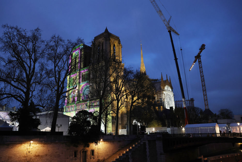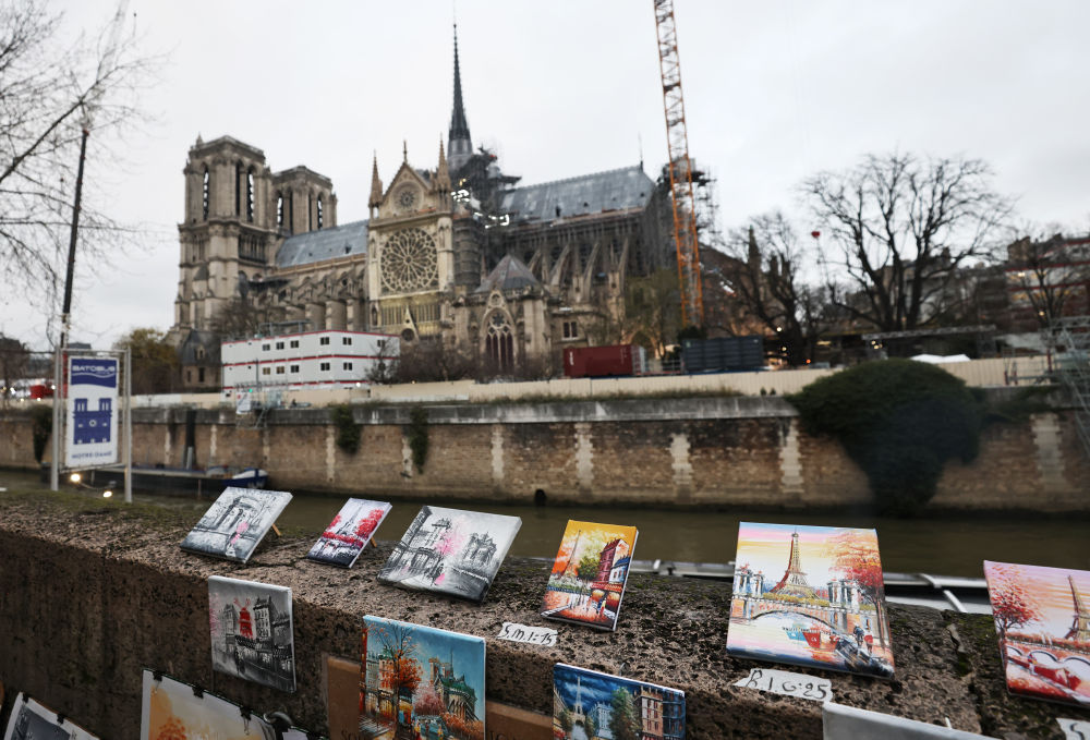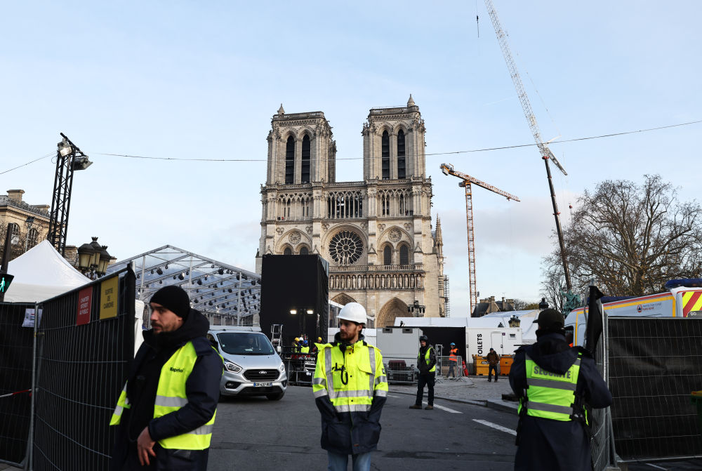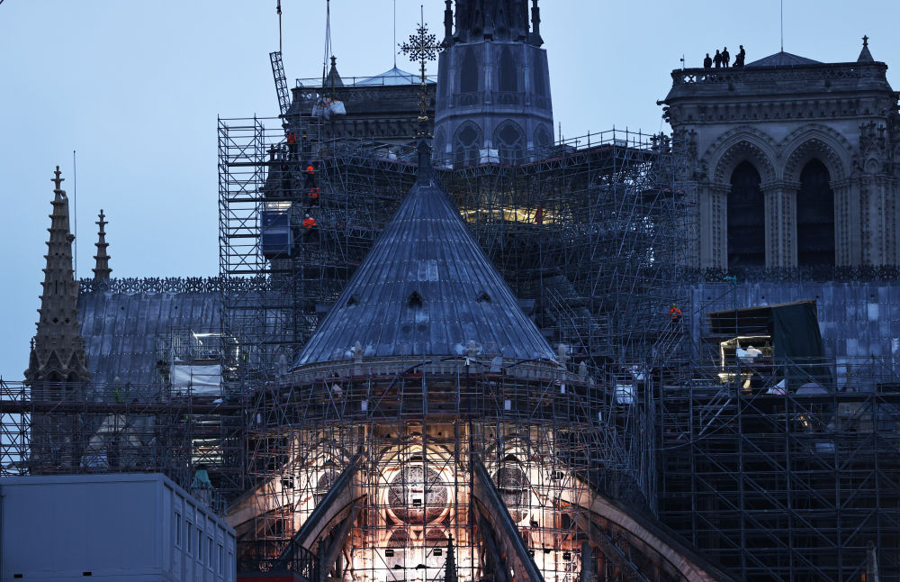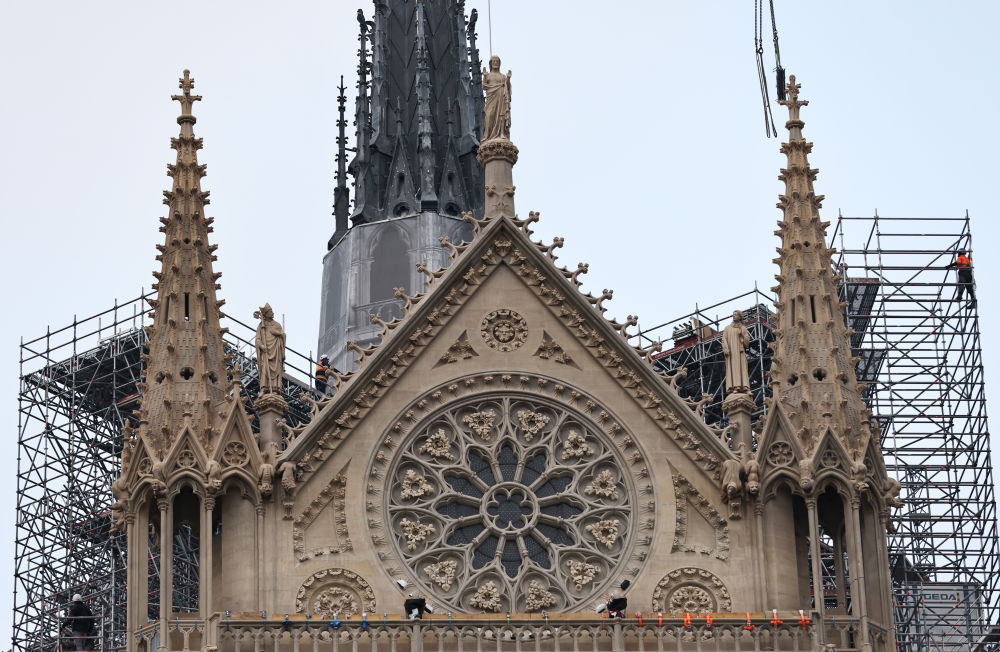 12月4日,工人在即将重新开放的法国巴黎圣母院忙碌。