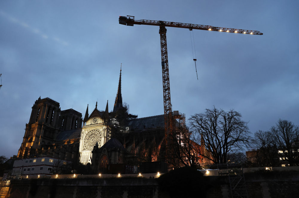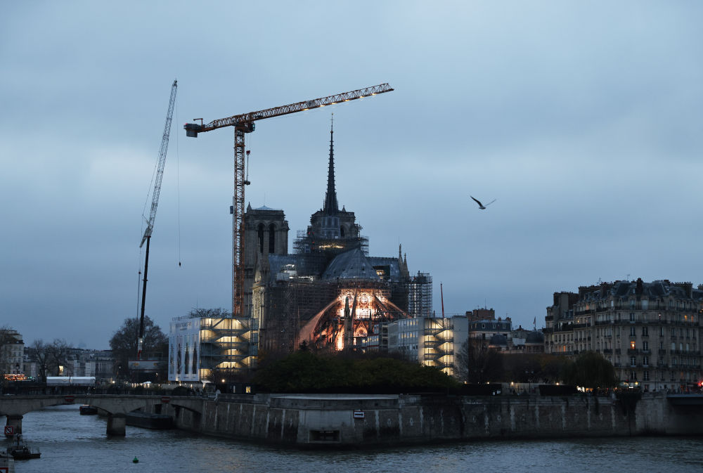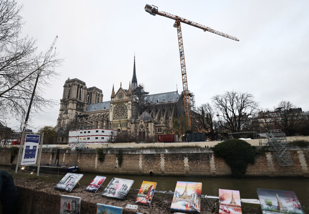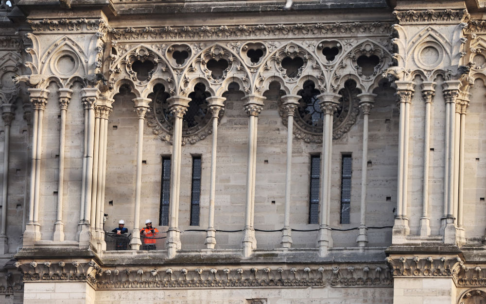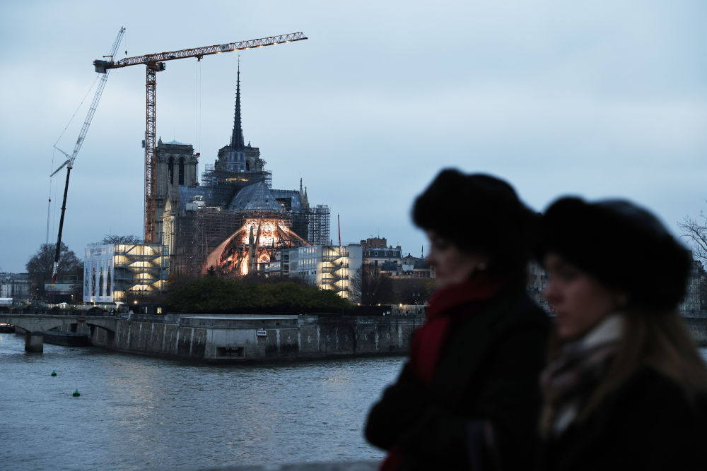 12月4日,工人在即将重新开放的法国巴黎圣母院忙碌。