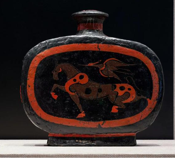 彩绘牛马鸟纹漆扁壶 图/湖北省博物馆
