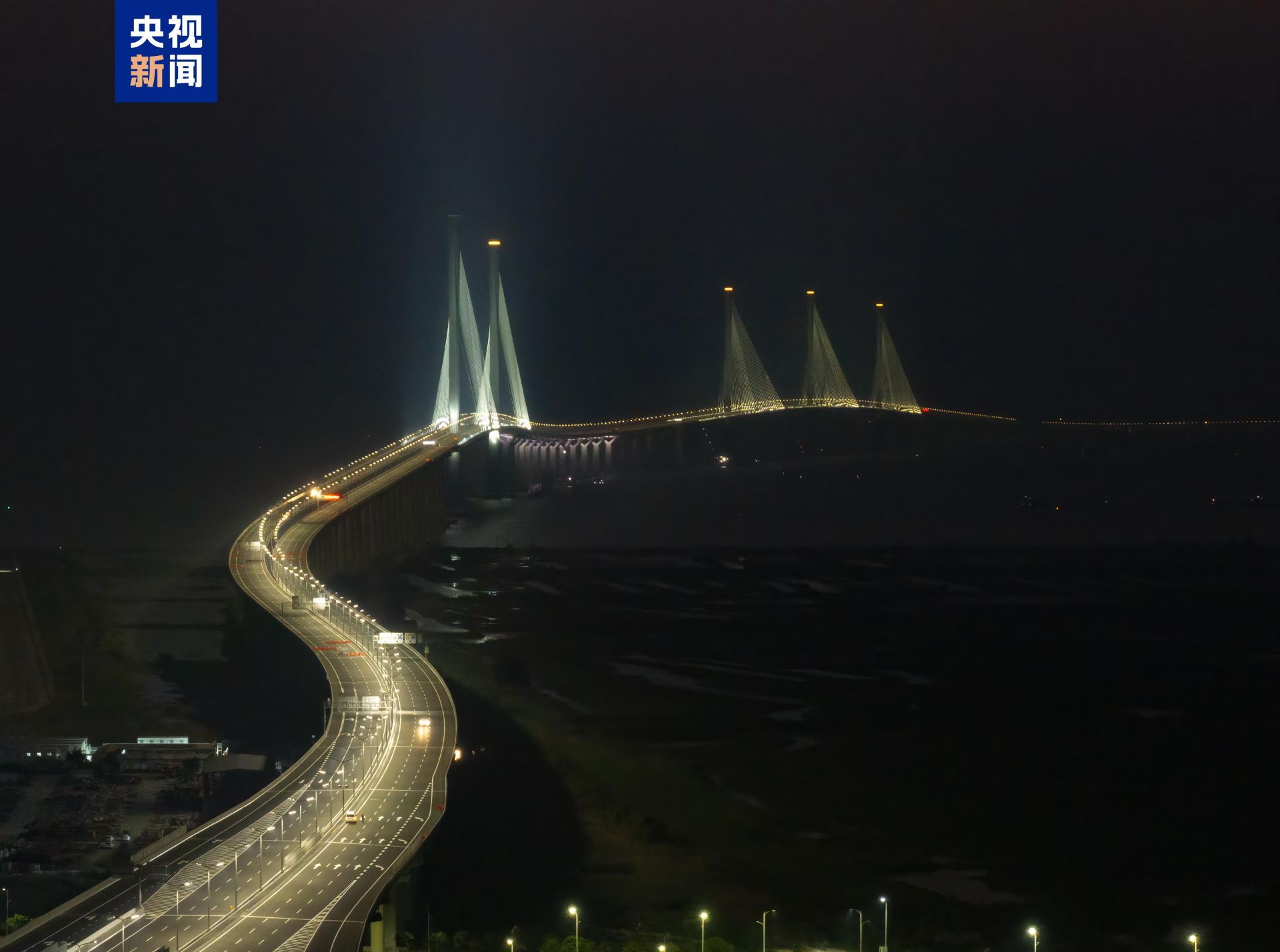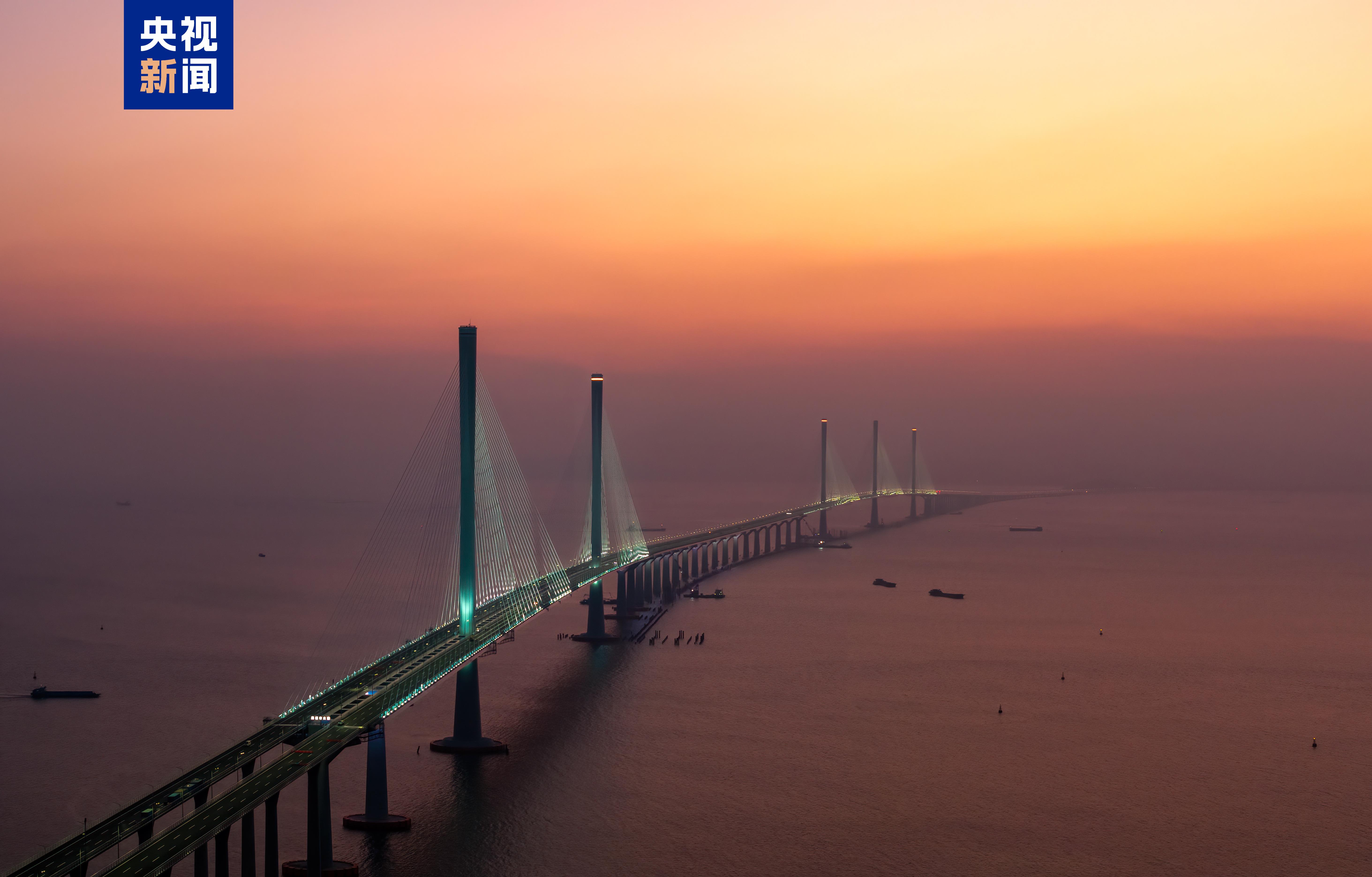 12月8日,黄茅海跨海通道全线亮灯,柔和明亮的灯光宛如海上银河,在黄茅海海域璀璨生辉。