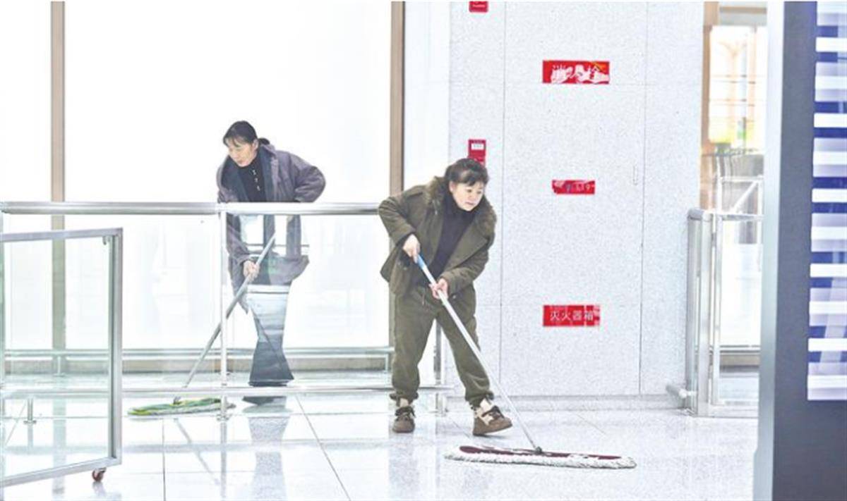 12月4日,荆荆高铁荆州站北站房内,保洁工人正在进行深度保洁。 (湖北日报全媒记者 刘曙松 通讯员 肖敏 摄)