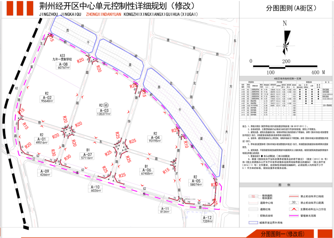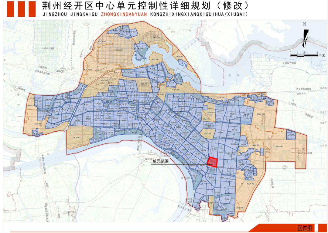 荆州经开区中心单元规划范围东至东方大道,南至江津东路,西至王家港路,北至荆沙大道。根据《荆州经开区学前教育、中小学教育服务设施布局方案(2023-2025年)》,荆州经开区管委会申请对该单元控规进行修改,详见附图。