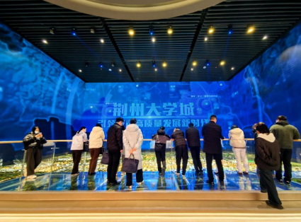 青年们走进展厅,宏大的科技场景、翔实的文史资料、巧妙的艺术构思一一展现在大家眼前,讲解工作人员详细介绍了荆州大学城的历史脉络、功能布局、建设进展和产业发展方向等情况。