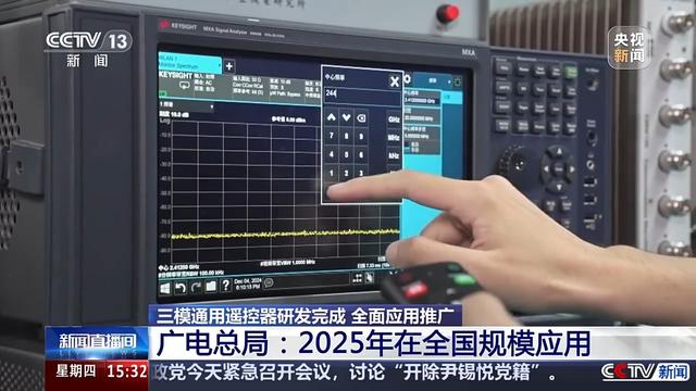 广电总局广播电视规划院无线所副所长 常江:其实大家一直就有一个痛点嘛,家里至少要控制一个机顶盒和电视,两个遥控器才能看电视,尤其是一些老年人,其实早就分不清到底该用哪个遥控器。那这次我们的三模通用遥控器,就是彻底真正意义上解决一个遥控器看电视,帮助我们老百姓真正能够提升操控体验,简单轻松地看电视。