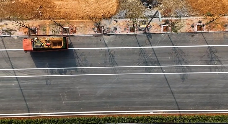 沥青路面摊铺完成100%黄石新港园区段海州大道11.5km路面已开放交通
