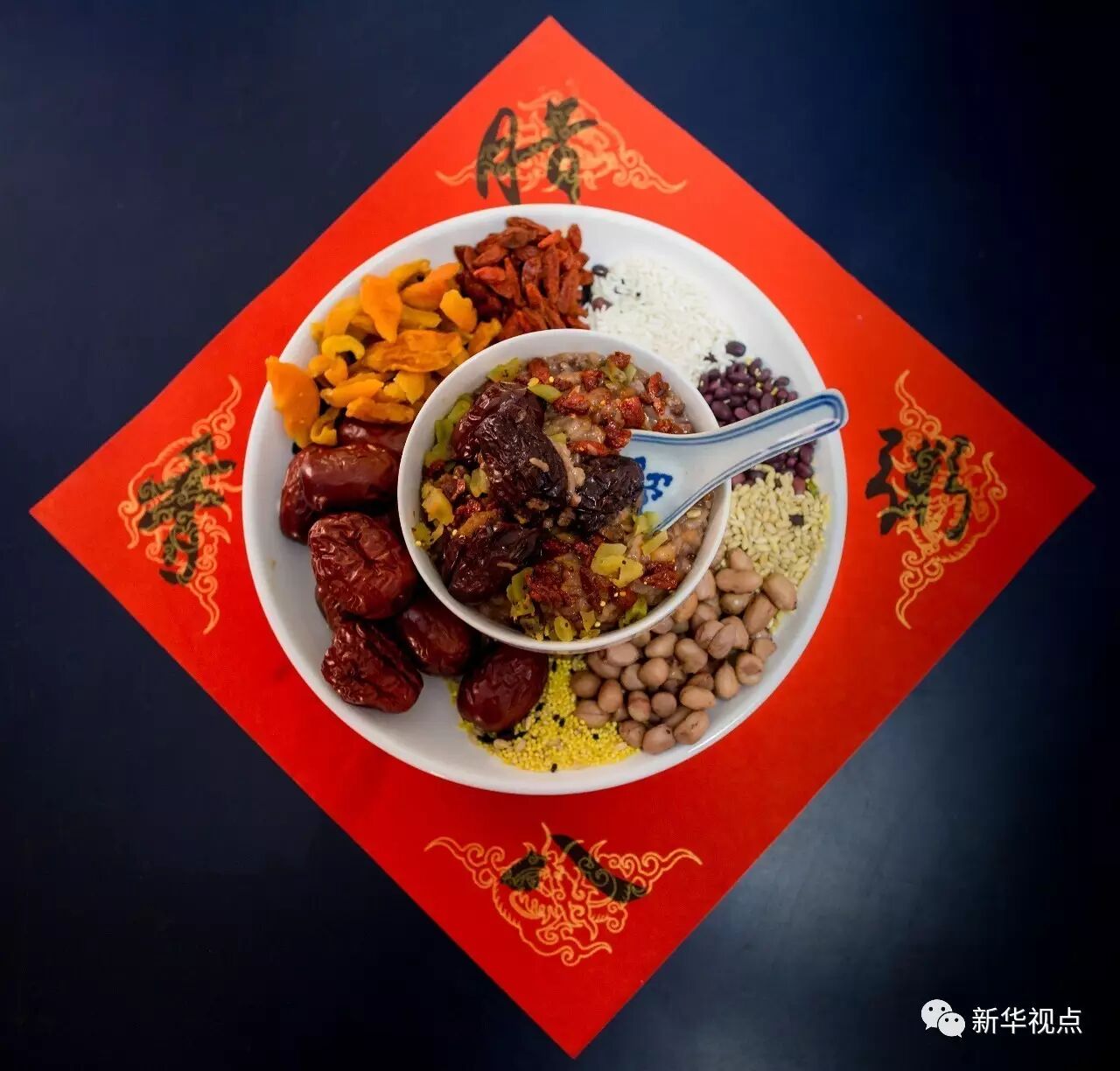 这是1月4日在内蒙古呼和浩特市玉泉区清泉街社区拍摄的腊八粥及制做腊八粥的食材。 新华社发 丁根厚 摄