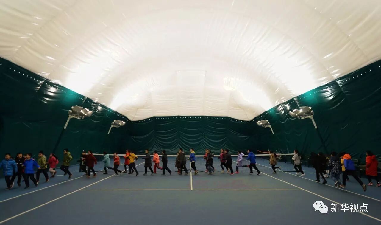 1月4日,石家庄华兴小学誉兴校区启用气膜体育馆,同学们可以在馆内正常上体育课。 新华社记者王晓摄