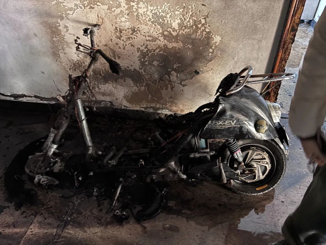 消防员指着电动车燃烧剩下的“废墟”说:“住宅小区内,疏散楼梯间是主要生命通道,若电动自行车在此充电引发火灾,烟雾和火势会在楼道内迅速蔓延,到那时候后果不堪设想了。”