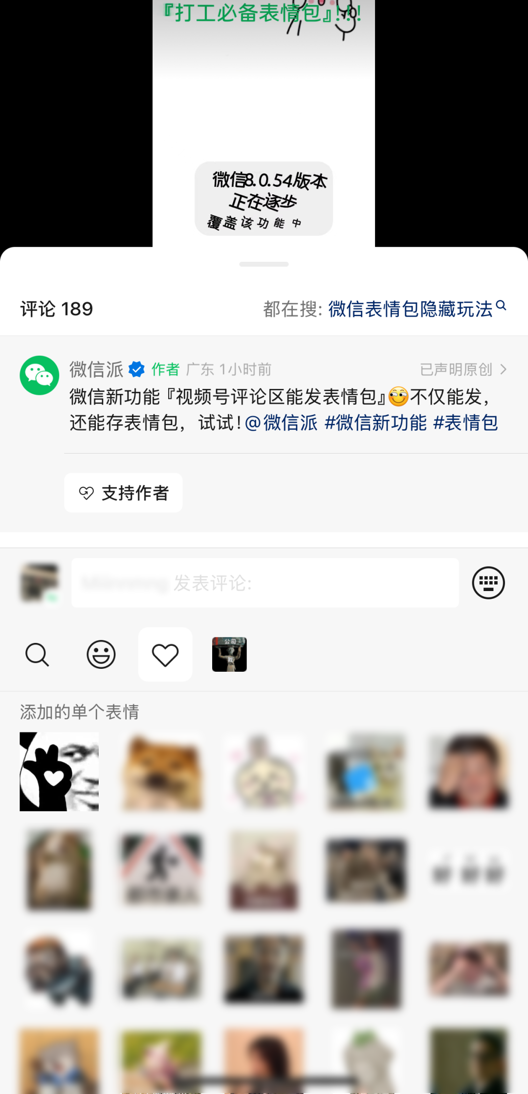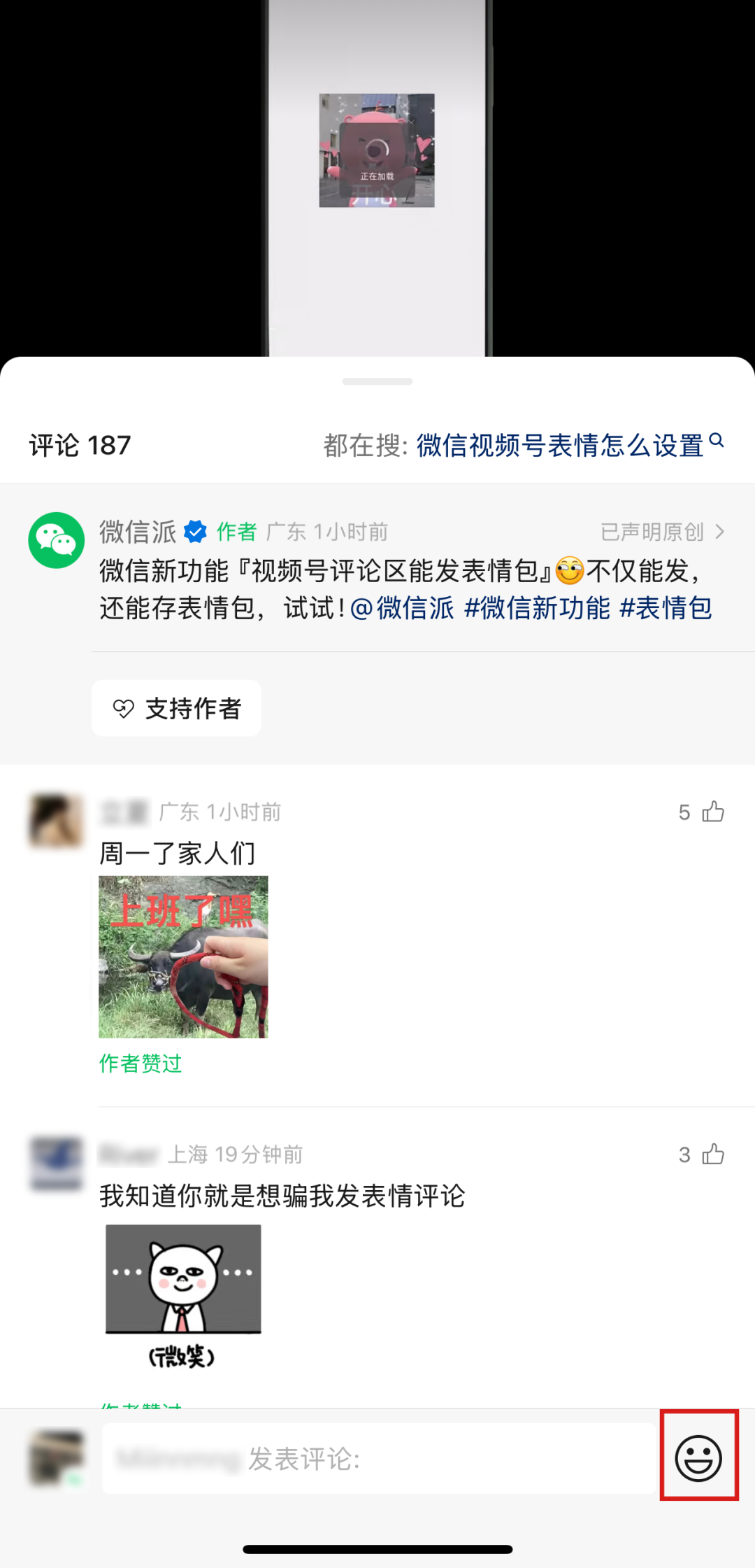 12月23日,据“微信派”消息,微信视频号评论区可以发表情包了,“斗图”即将开始。