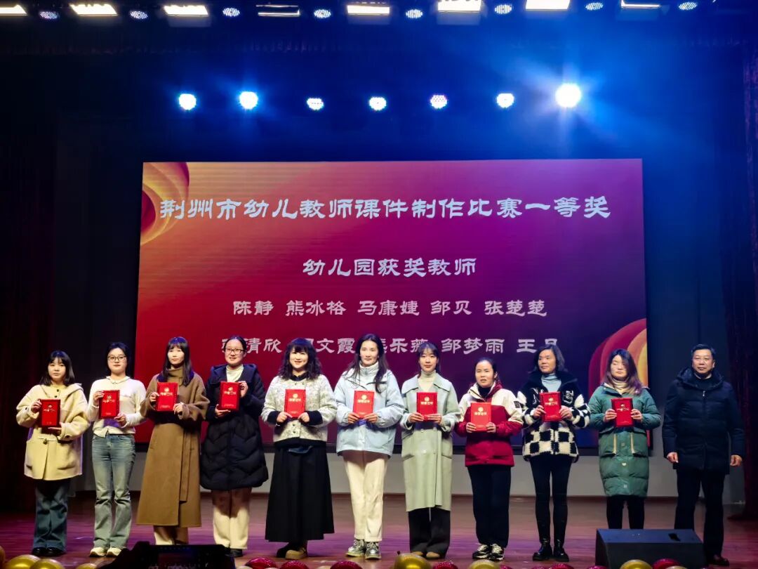 ▲张清欣(左七)老师获幼儿教师课件制作比赛一等奖