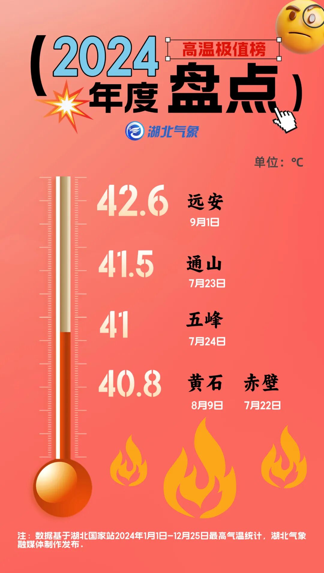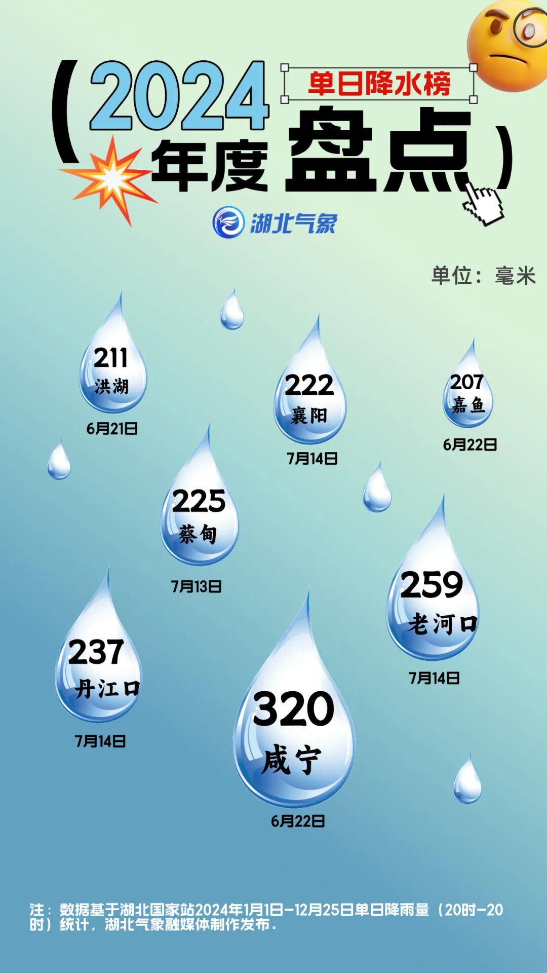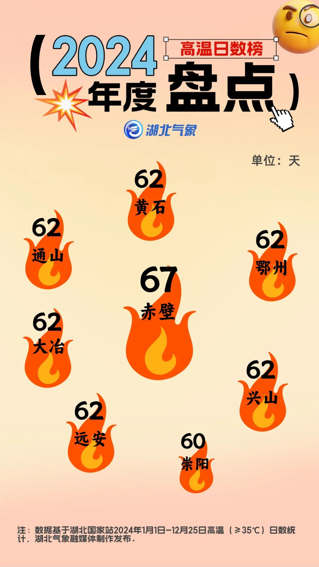 回首2024年,夏季提前到,秋冬推迟来,2月份的两场雨雪冰冻天气刷新了湖北人对降雨形态的认识。这一年的阴晴冷暖、风霜雨雪,哪个瞬间让你印象最深刻?湖北天气盘点了湖北各县市天气数据,选出2024年天气之最,快来看看你所在的城市上榜了吗?