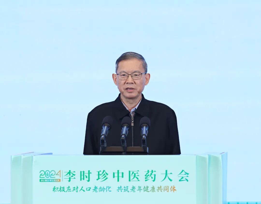 王忠林说,习近平总书记深刻指出,中医药作为传统医药的杰出代表,是中华文明的瑰宝。湖北中医药历史源远流长、创新活力迸发、产业基础良好,发展中医药前景广阔。本次大会聚焦“积极应对人口老龄化,共筑老年健康共同体”主题,著名专家学者、行业翘楚齐聚一堂,弘扬中医文化、共谋健康之策,必将有力促进中医药与老年健康深度融合,为加快建设健康中国注入强劲动能。当前,湖北正坚定贯彻习近平总书记考察湖北重要讲话精神,落实“切实把中医药继承好发展好利用好”的重要要求,深入实施中医药振兴发展工程,为加快建成中部地区崛起的重要战略支点提供坚实支撑。我们将坚持向新而行,大力推进湖北时珍实验室建设,促进中医药多学科交叉融合,加强特色人才培养和新药研发,全力构筑中医药强省新优势;坚持聚链成群,着力推进“十大楚药”延链补链强链,做大做强一批百亿级龙头企业,加快构建现代中医药产业体系,全力激活中医药发展新引擎;坚持强医惠民,深入开展“中医中药荆楚行”活动,更好满足人民群众健康需求,全力打造中医药服务新标杆,与社会各界携手并进、同向同行,共同谱写中医药传承创新发展新篇章。