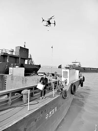 南京长江汇水上服务区用无人机为船员送货。新华社发