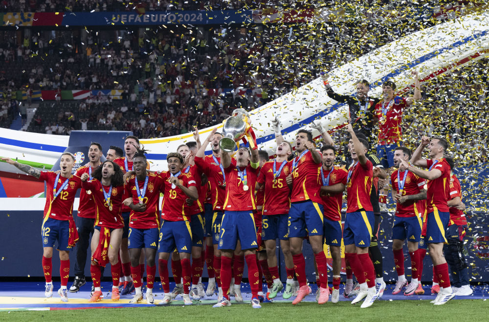 7月14日,西班牙队凭借替补登场的奥亚萨瓦尔的进球,2:1“绝杀”英格兰队,以全胜战绩收获队史第四座欧锦赛冠军奖杯,成为欧锦赛夺冠次数最多的球队。