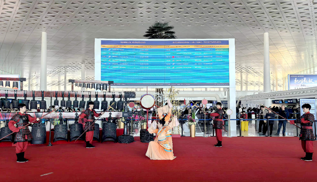 “在候机厅遇上精彩的表演,太惊喜了!”12月29日,来往天河机场的旅客惊喜地遇上荆州文旅快闪。《细腰舞》《楚楚动人》……一个个极具荆风楚韵的节目,给周末乘飞机的旅客带来了与众不同的出行体验。