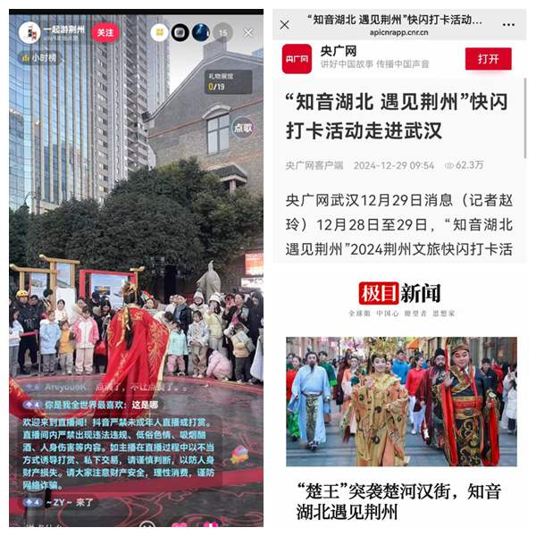 线下热热闹闹,线上也是氛围浓浓。在抖音平台,60多个抖音网红对本次活动进行了直播,在微博、小红书等平台上“2025遇见荆州”等话题霸榜热搜,人民网、央广网、湖北新闻、长江日报等中省媒体以及新浪湖北、B站、百度等平台也对活动进行了全程关注。