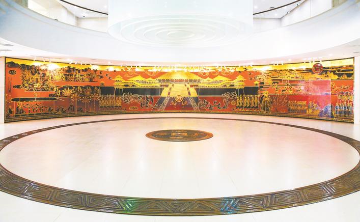 云梦县博物馆巨幅漆壁画。 (吴垠 摄)