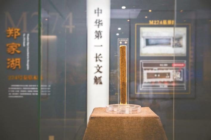 云梦县博物馆展出的“中华第一长文觚”。(吴垠 摄)