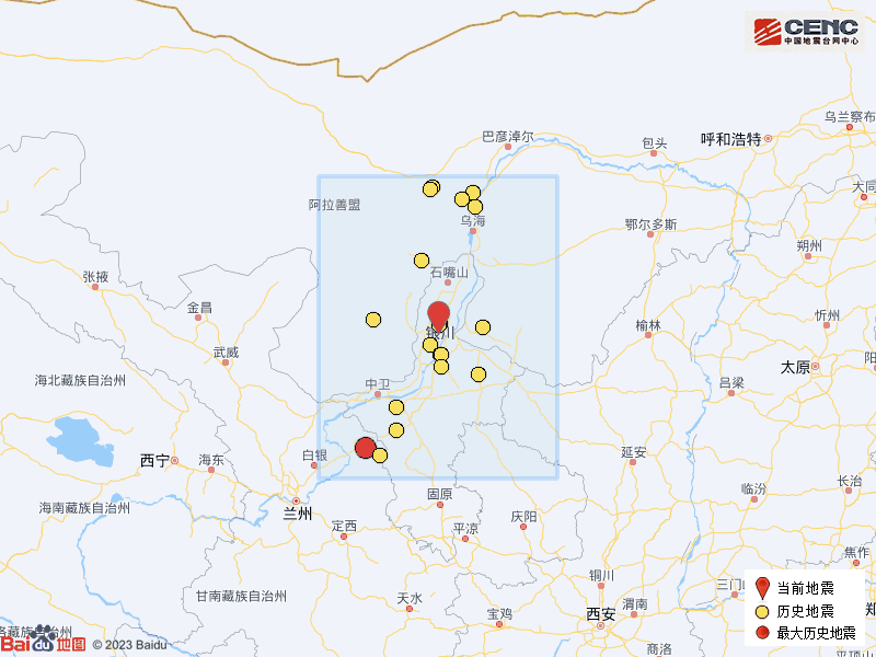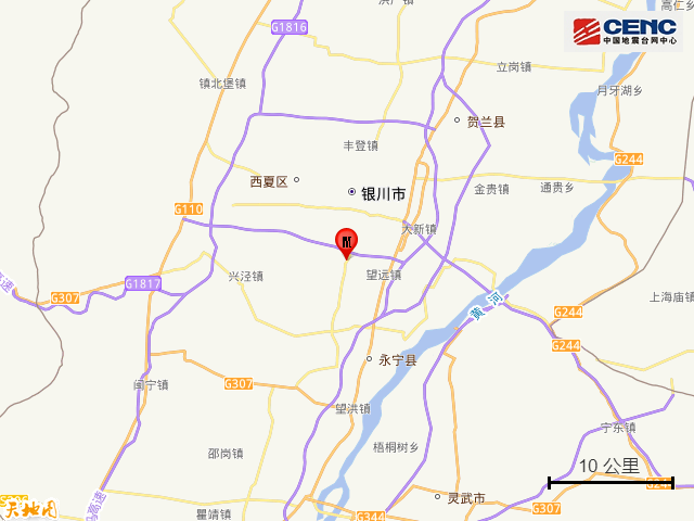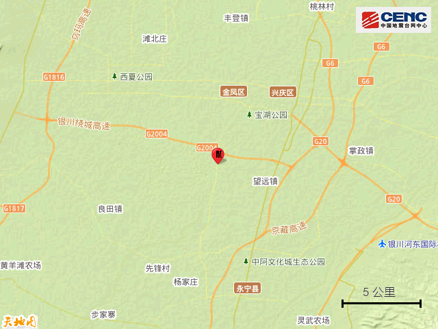周边县城:震中距金凤区8公里、距兴庆区10公里、距西夏区12公里、距永宁县14公里、距贺兰县24公里,距银川市9公里。