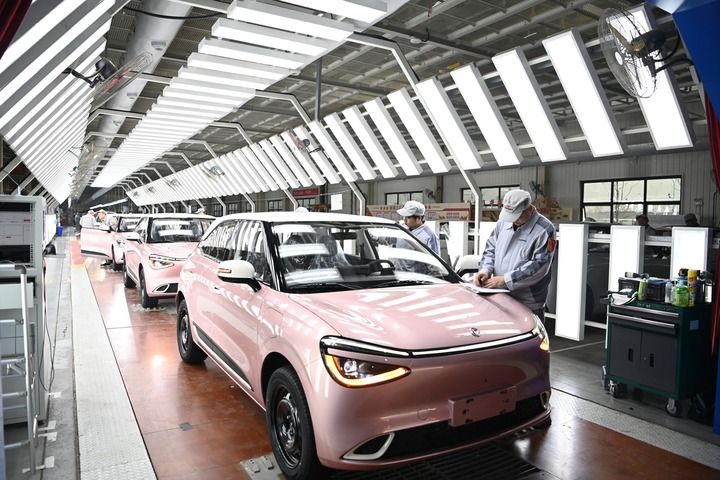 湖北襄阳东风汽车纳米科技(襄阳)有限公司总装车间,一辆辆新能源汽车陆续下线。谢勇 摄
