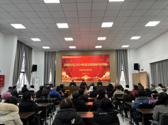 江汉风报道:为丰富辖区居民精神文化生活,增强志愿服务队伍的的凝聚力。2025年1月10日,荆州区郢城镇河套社区新时代文明实践站组织开展2024年度志愿者积分兑换活动。