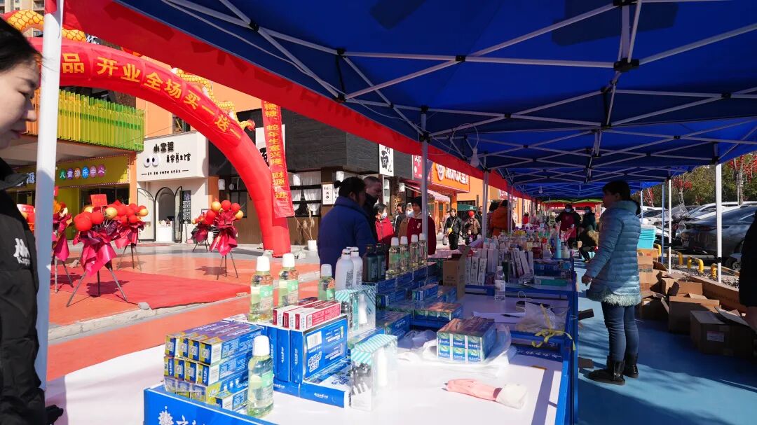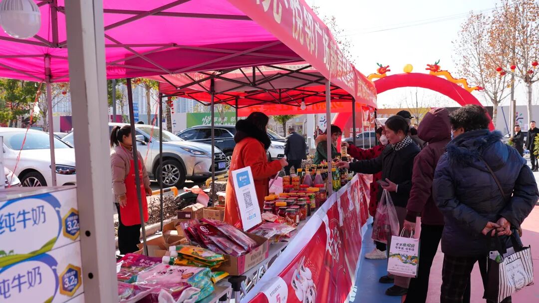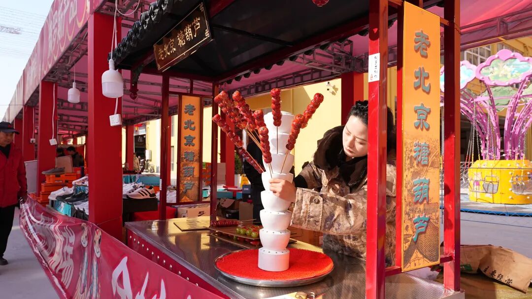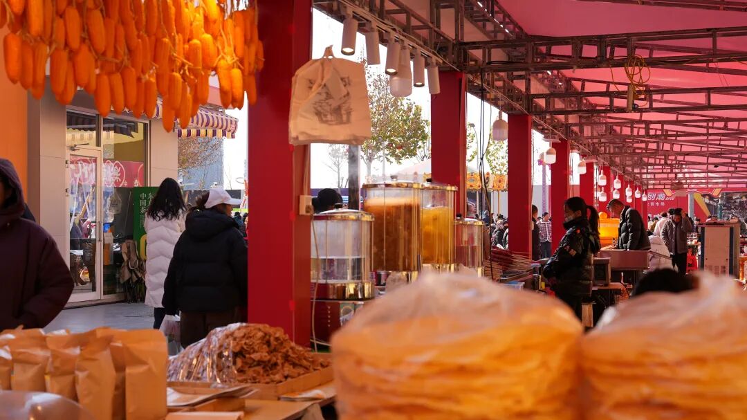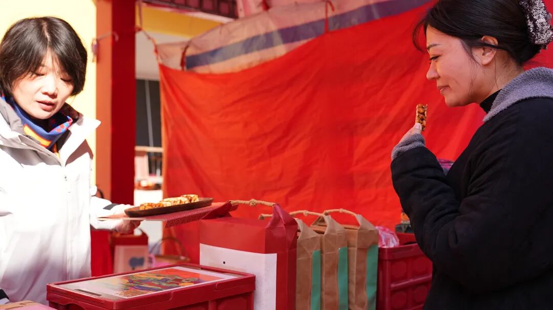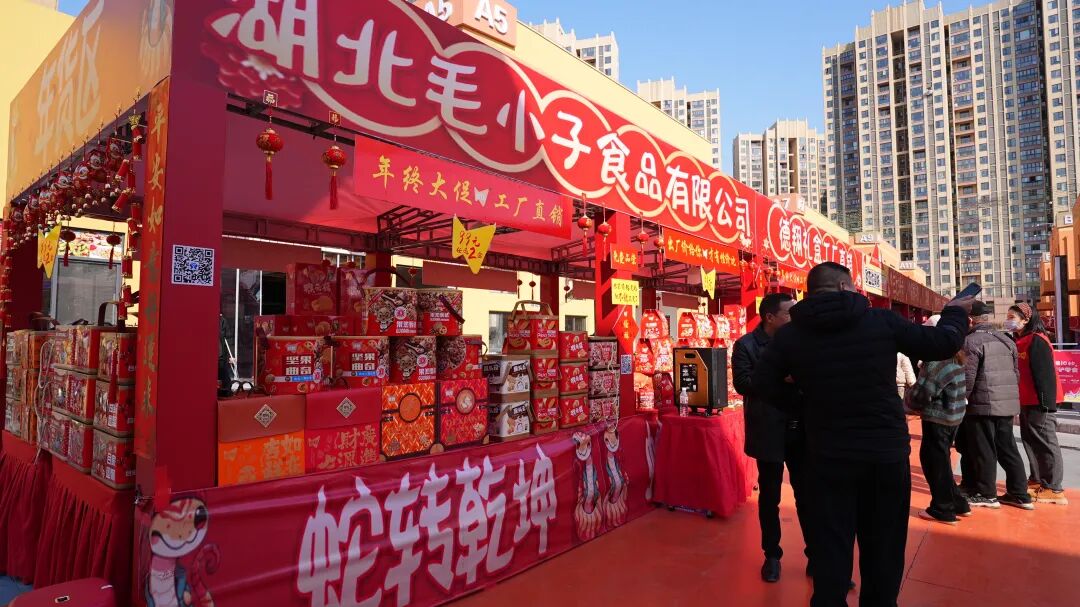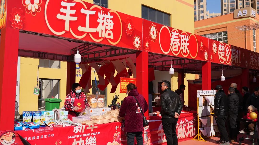 文化展示区内,大红的灯笼、明艳的春联福字高高挂起,成为抢手年货;