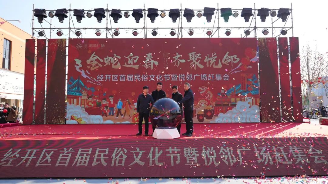 经开区党工委书记苏云国,经开区党工委委员、管委会副主任李浩然,市商务局党组成员、副局长孟炜,湖北泓光企业管理有限公司董事长肖啸共同为活动启幕。