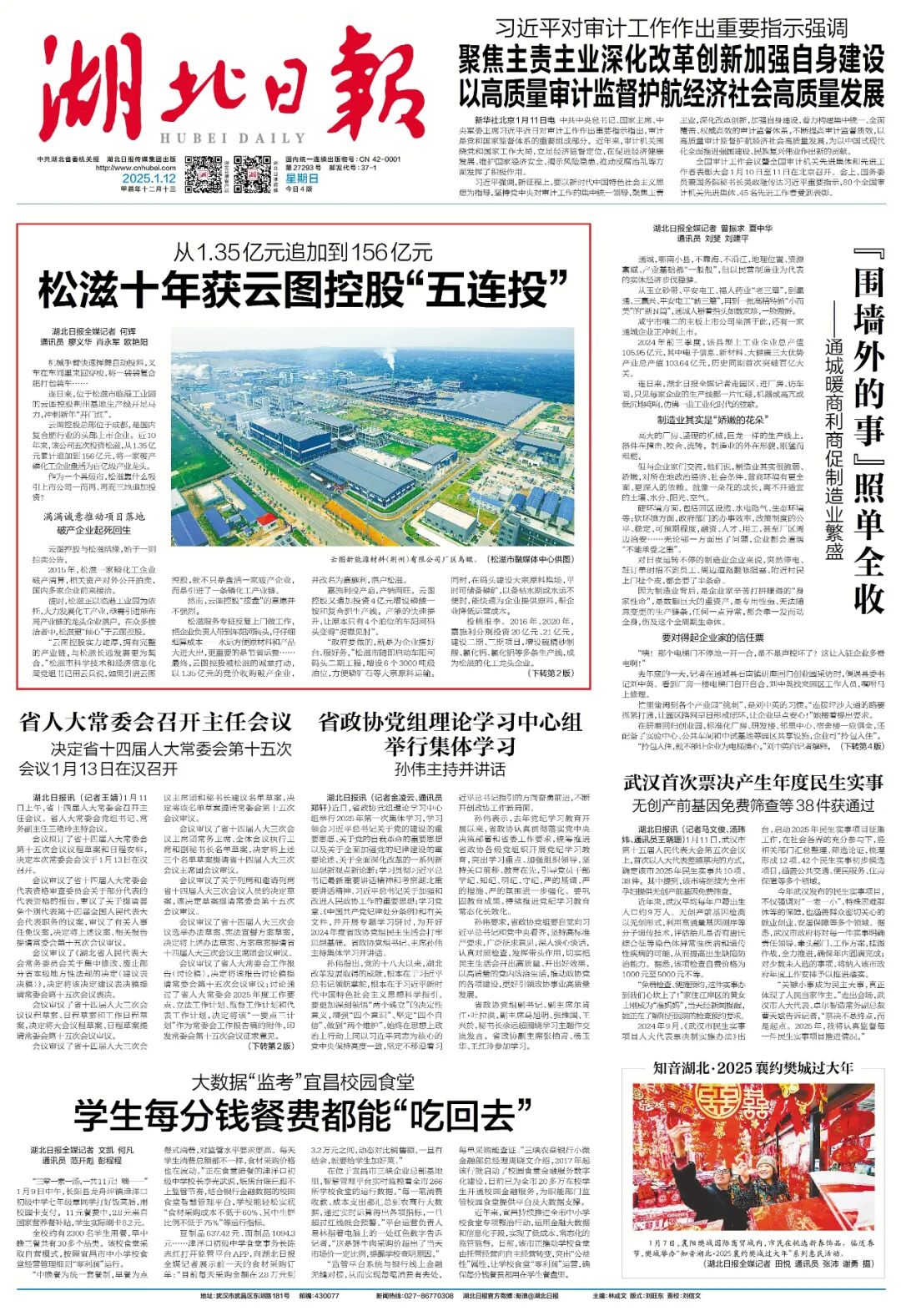 1月12日,湖北日报头版头条刊发《松滋十年获云图控股“五连投”》,聚焦松滋市坚定不移走好“工业强市”之路,打造磷化工产业,助力企业延链补链强链。