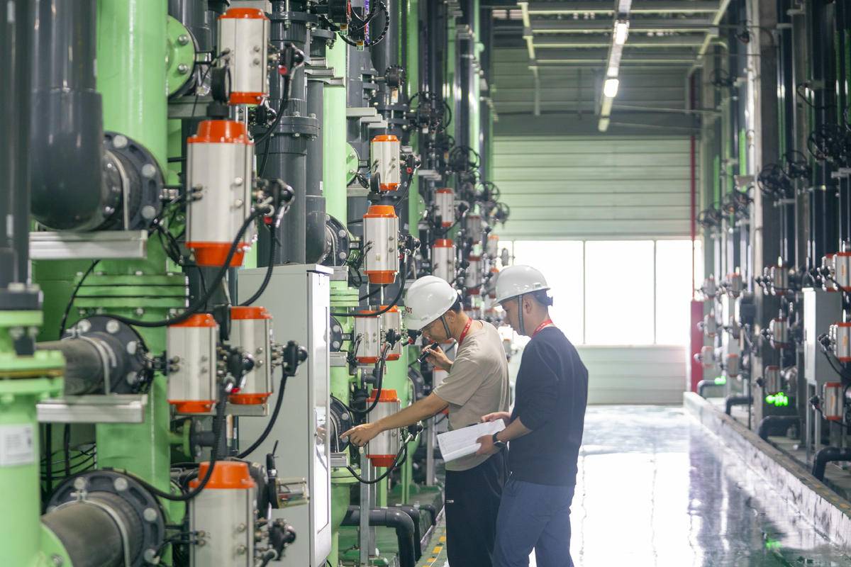 TCL华星武汉t4制造基地,工程技术人在巡检庞大的纯水回收系统。(湖北日报全媒记者 魏铼 摄)