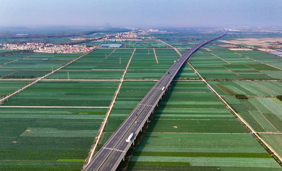 鸟瞰嘉鱼县潘家湾镇蔬菜长廊。(湖北日报全媒记者 薛婷 摄)