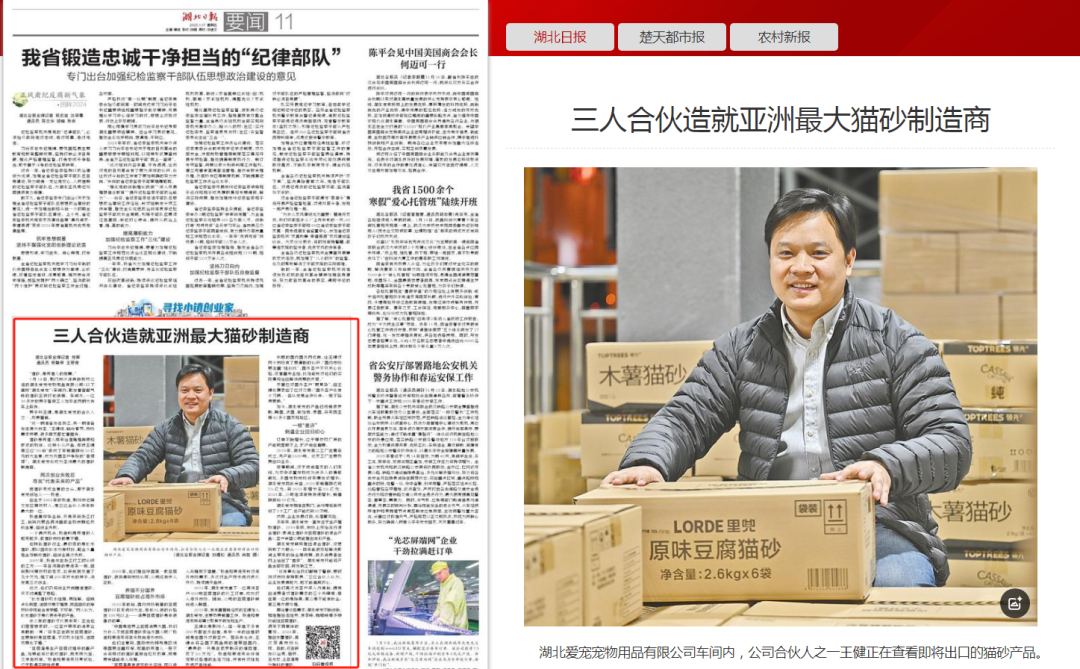 猫砂是养猫人用来给猫掩埋粪便和尿液的物体。这种小众产品,却被王健等三位“80后”做成了年销售额近10亿元的大生意,成为外国客户争抢的“香饽饽”。湖北爱宠也成为亚洲最大的猫砂制造商。