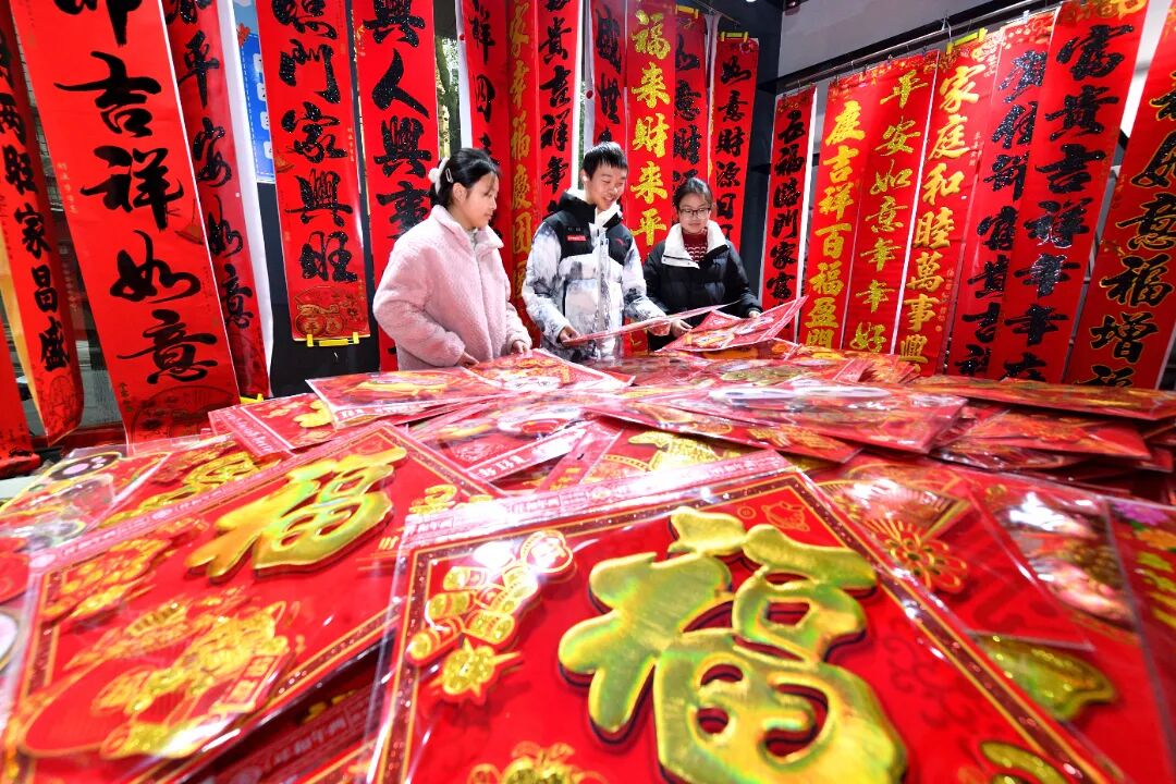在城区的年饰摊位上,春联、年画、福字等传统年俗饰品充满吉祥寓意,中国结、红灯笼高高悬挂,一件件精美的节日饰品将年味儿“拉满”,编织出浓浓的新年氛围。市民在摊位前驻足挑选,把新春“福气”带回家中。