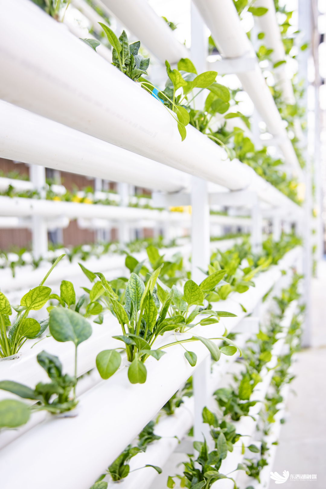吴志勇掀开栽培床,向记者展示了蔬菜的根系,只见浅黄色的营养液潺潺流过,蔬菜的根系绵延粗壮,有力地吸收着营养成分,已经达到上市条件的蔬菜,叶面翠绿、整洁,没有灰尘,更没有虫眼。吴志勇介绍说:“植物工厂里的蔬菜通过水培方式种植,按需配比营养,不但营养吸收更加充足,而且通过控制温度、光照、湿度等生产要素,可以降低病虫害发生的概率,从而不使用农药,让蔬菜食用更安全。”