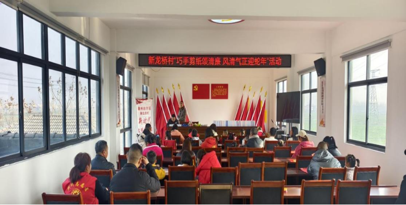 新龙桥村举办 “巧手剪纸颂清廉 风清气正迎蛇年” 活动,村民们用剪纸传递廉洁理念。