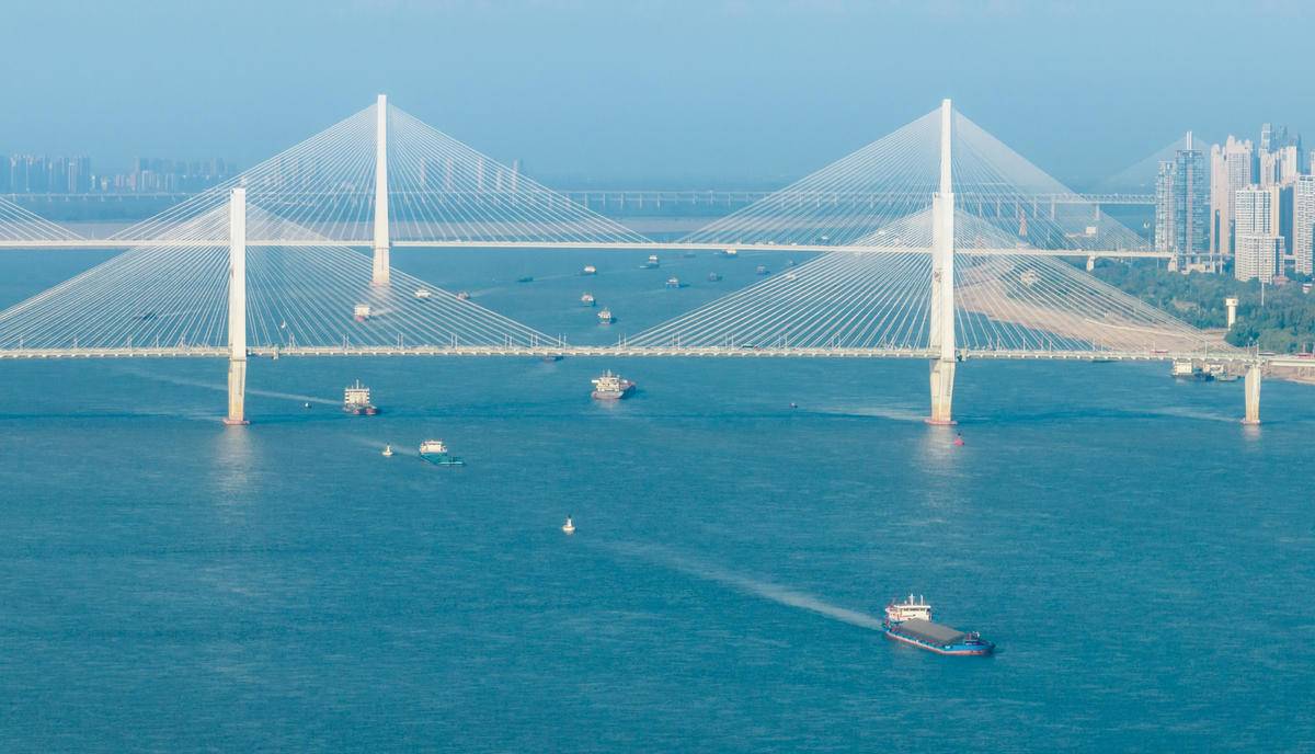 船舶行驶在长江武汉江段水域。(湖北日报全媒记者 薛婷 摄)