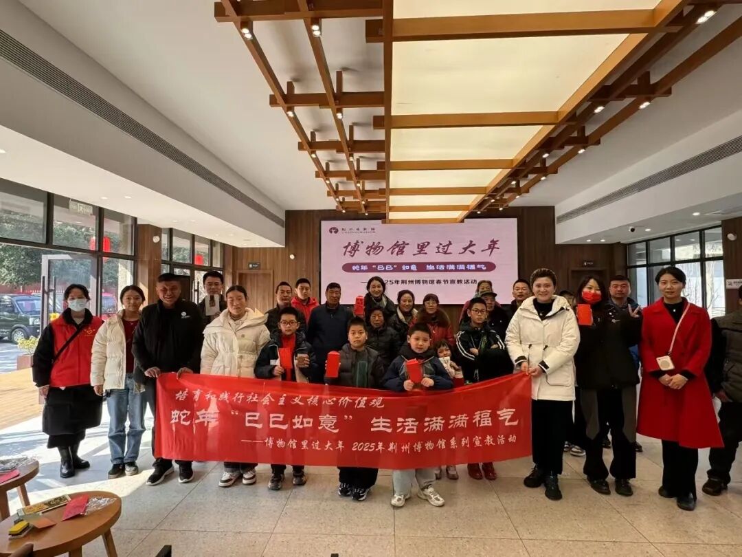 ▲荆州博物馆开展“蛇年巳巳如意 生活满满福气”春节主题宣教活动,融合参观讲解、古琴演奏、有奖问答、民俗宣讲、自制红包等多个环节,为观众带来了一场别开生面的文化盛宴。(图源|荆州市文旅局)
