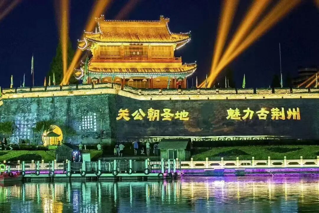 ○荆州市——“刘关张”巡游古城活动(正月初一到正月十五):荆州古城历史文化旅游区举办舞龙舞狮、古城送福、楚风歌舞,沉浸式体验不一样的古城之旅,画舫夜游、水上舞台、古城灯光秀等夜游项目为市民游客呈现了一场视觉盛宴。