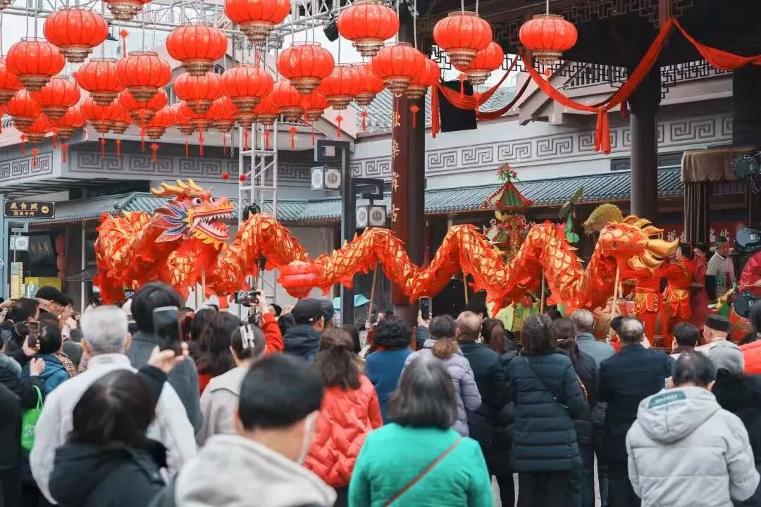 春节期间,荆州整个城市沉浸在一片喜庆氛围之中,舞狮、舞龙、楚风歌舞、猜灯谜等年味民俗活动让人感受到浓浓的节日气氛。