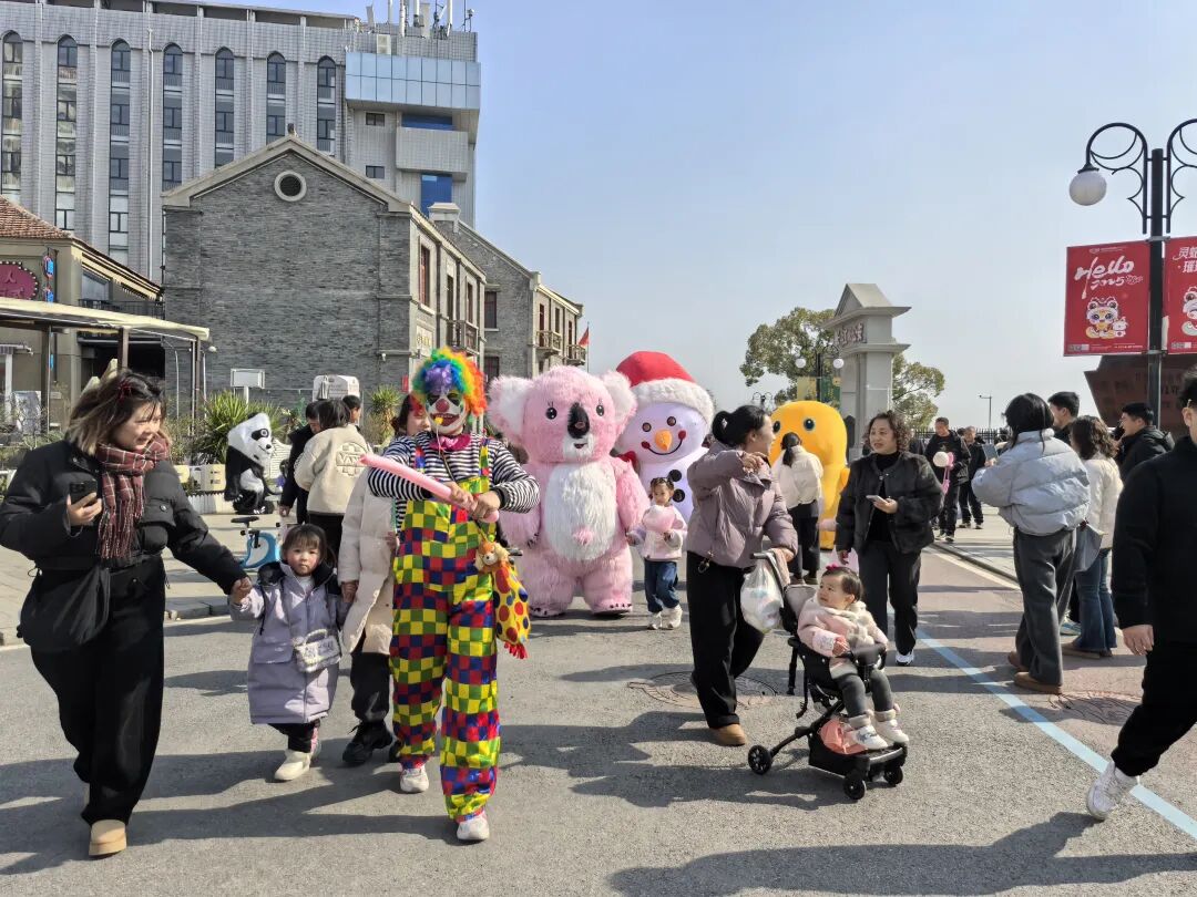 ▲沙市码头年味满溢 小丑巡游萌趣十足。(图源|荆州市文旅局)