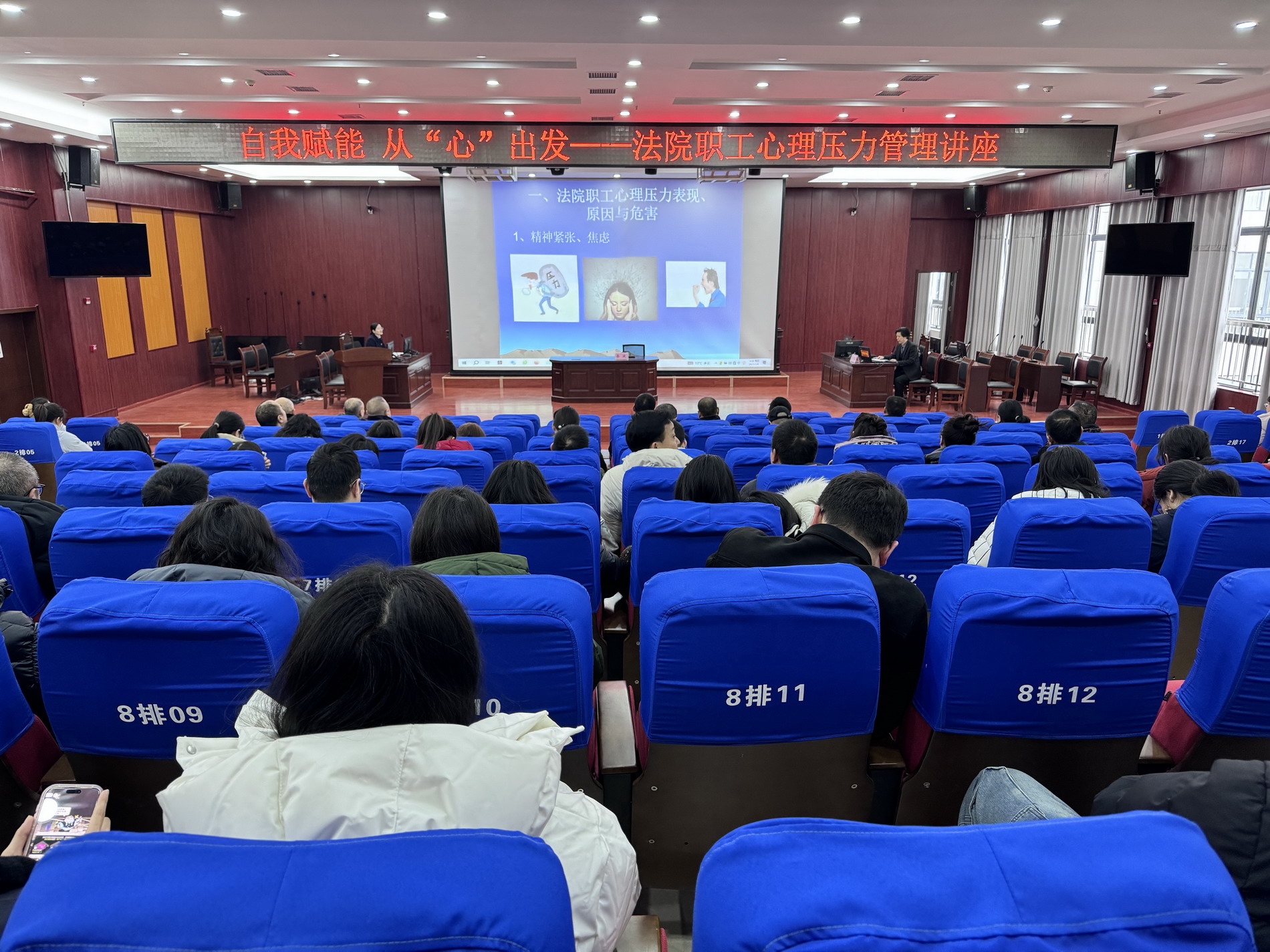2月6日上午,受公安县人民法院之邀,荆州市政协常委、市社会心理学会会长舒闻铭,为法院职工做了题为《自我赋能 从“心”出发——法院职工心理压力管理讲座》专题讲座,受到全院职工热烈欢迎。