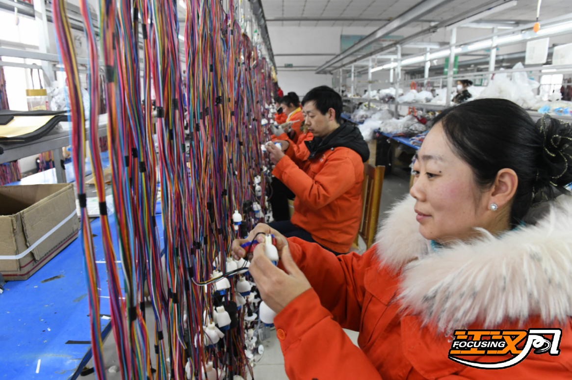 江汉风报道:2月10日,位于经开区滩桥镇的新发电子科技有限公司生产车间,工人正在操作台上绕线圈、缠胶带、做检测,多条生产线一派忙碌景象。