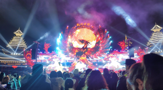 华灯初上,在荆州方特景区的九州民俗节现场,正在表演具有民俗特色的节目,全天候轮演的火壶、火龙和打铁花等非遗演出,将文化传承“玩”出新花样。