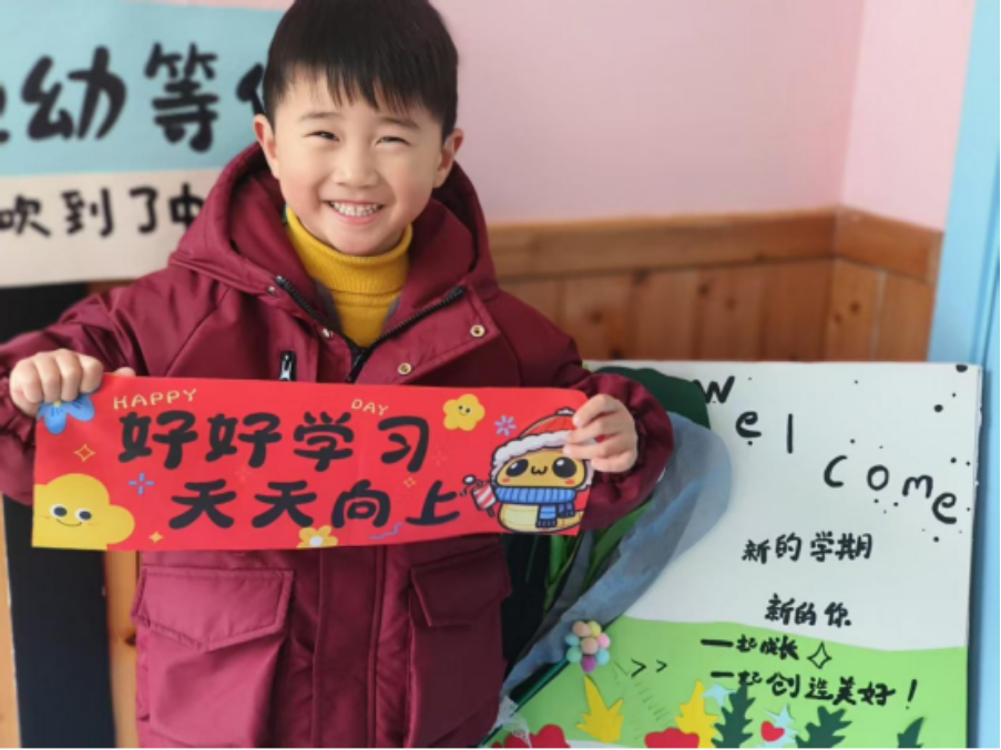 开学第一天,鱼农桥街道中心幼儿园的小朋友说出新年心愿,共同迈进新学期。