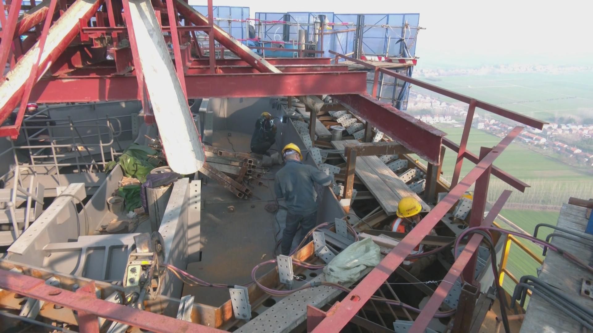 中国铁建大桥局武松高速江陵至松滋段2标项目主塔主管工程师杨思哲说:“我们主塔后续预计增加施工人员至70人,进行24小时连班作业,确保主塔的钢壳阶段以三天一节的速度持续长高。”